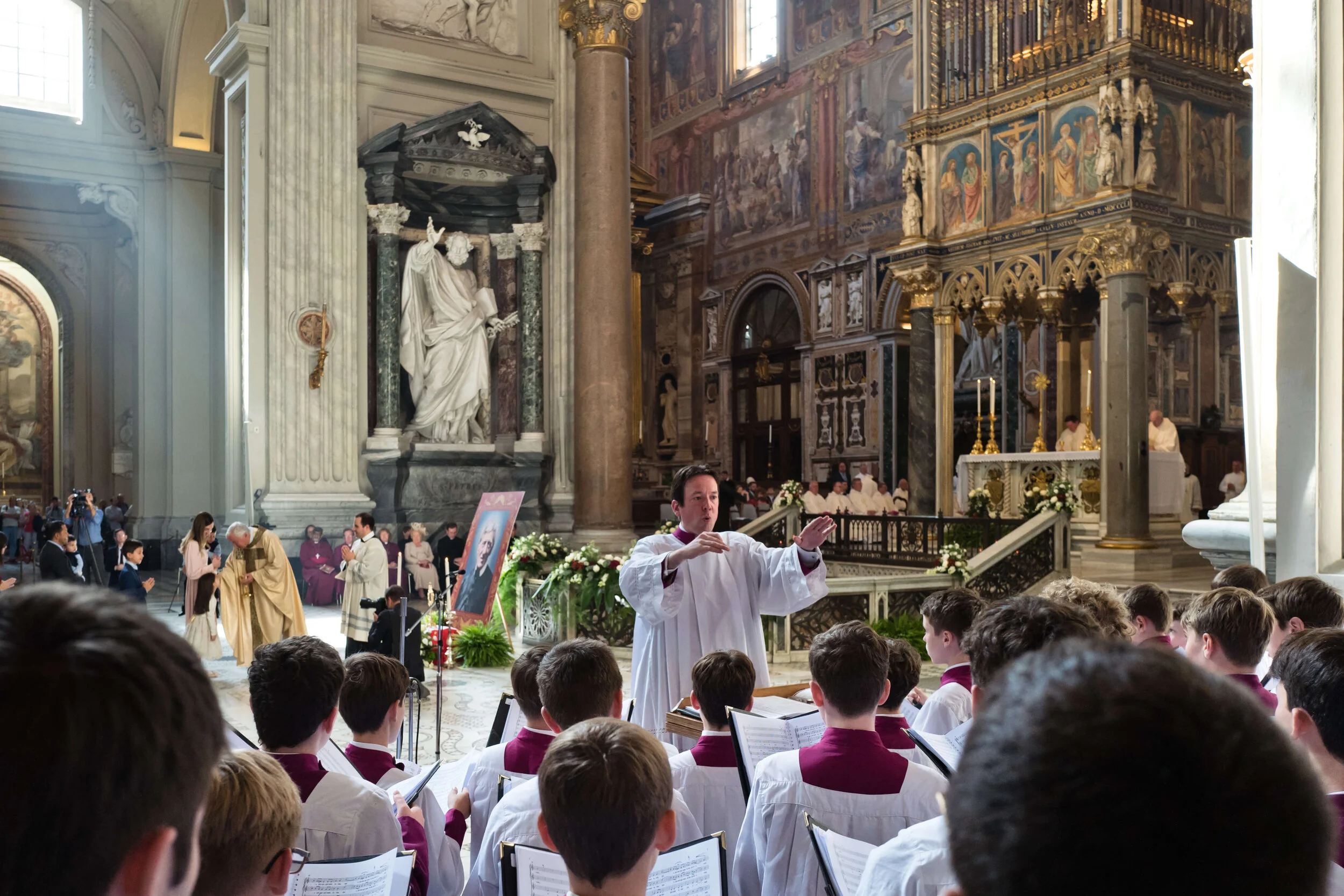 The Holy Father canonised John Henry Newman as well as Sister Mariam Thresia, Giuseppina Vannini, Dulce Lopes Pontes and Margarita Bays. The Director of the Papal Choir, the Cappella Sistina, graciously invited the London Oratory Schola to sing during the Offertory: the Schola sang Palestrina’s Exsultate Deo.